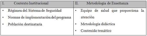 La selección y definición de las categorías de análisis se realizó en torno a la revisión de la literatura y el análisis del Programa de Educación en Diabetes implementado en México y Cuba (12). Es importante destacar que los aspectos incluidos en cada categoría fueron considerados porque de acuerdo a la literatura, afectan la capacidad de los países para la implementación de sus respectivos programas (3).