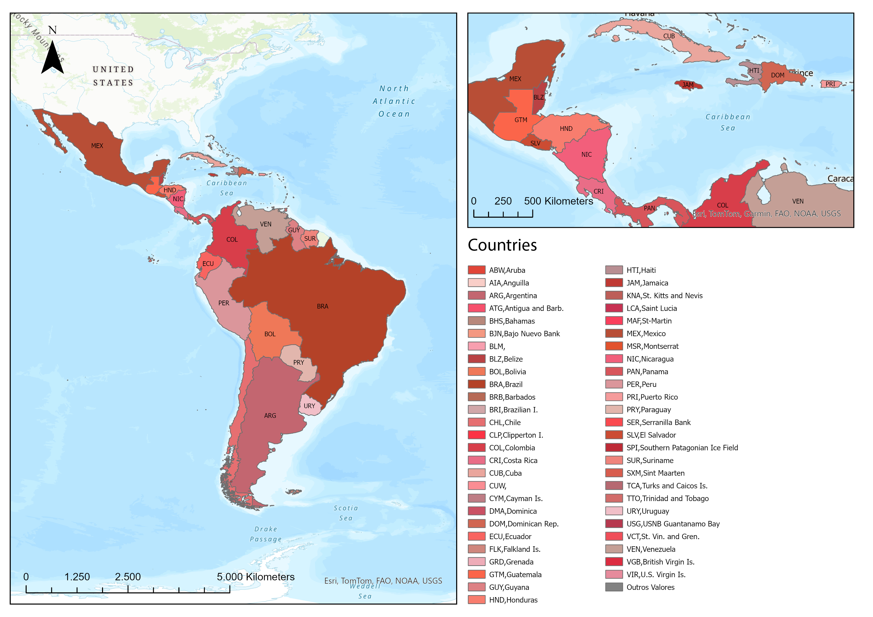 Latin America and the Caribbean (Figure 1) has an estimated population of 660 million inhabitants in 202210. It is located between the Pacific Ocean and the Atlantic Ocean and has an extensive region that borders the United States of America.