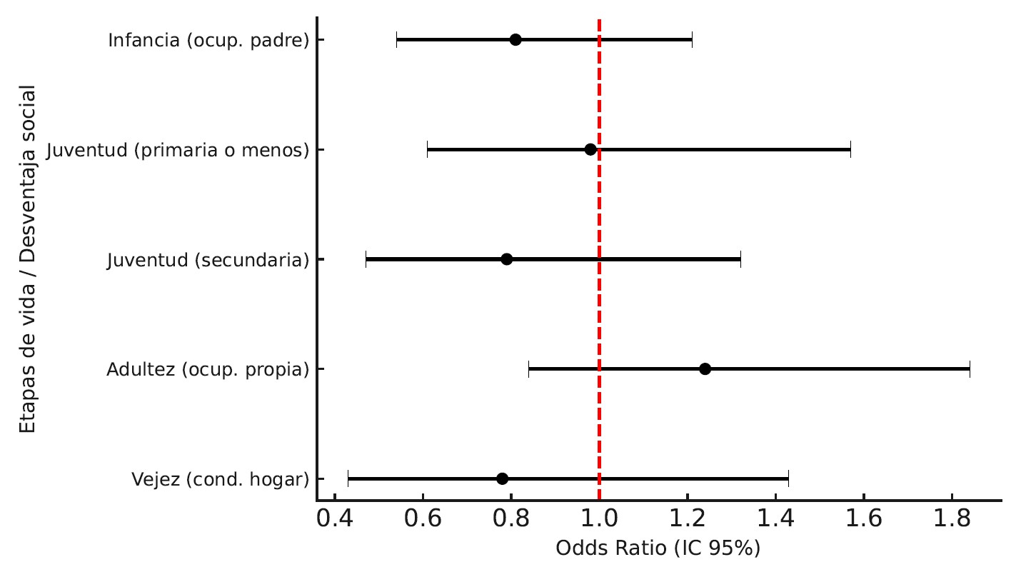Tabla 5. Asociación entre la desventaja social a lo largo de la vida y caídas que requirieron atención médica en los adultos mayores de España.