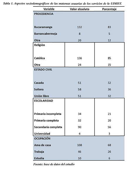 La muestra del presente estudio estuvo conformada por 160 maternas usuarias de los servicios de la UIMIST; de las cuales, el 73% de las maternas eran gestantes y el porcentaje restante se encontraban en la etapa de puerperio.