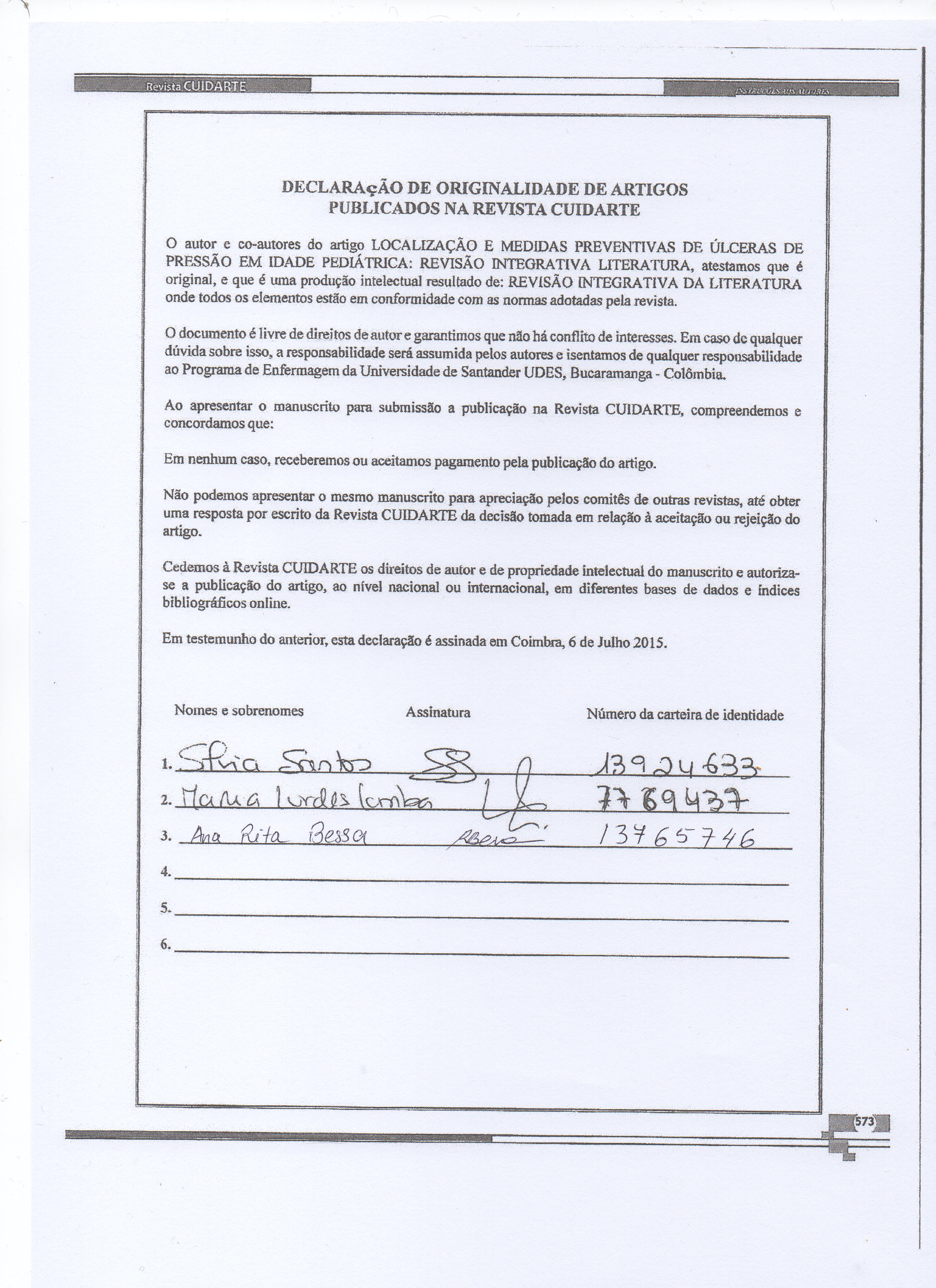 Cómo citar este artículo: Lomba L, Bessa R, Santos S. Localização e medidas preventivas de úlceras de pressão em idade pediátrica: revisão integrativa da literatura. Rev Cuid. 2015; 6(2): 1085-93. http://dx.doi.org/10.15649/cuidarte.v6i2.169